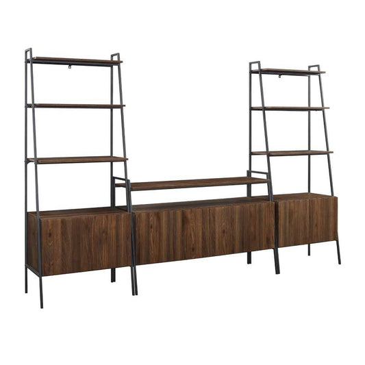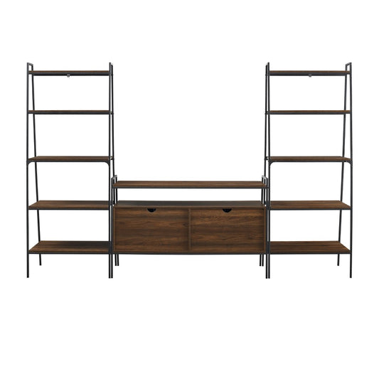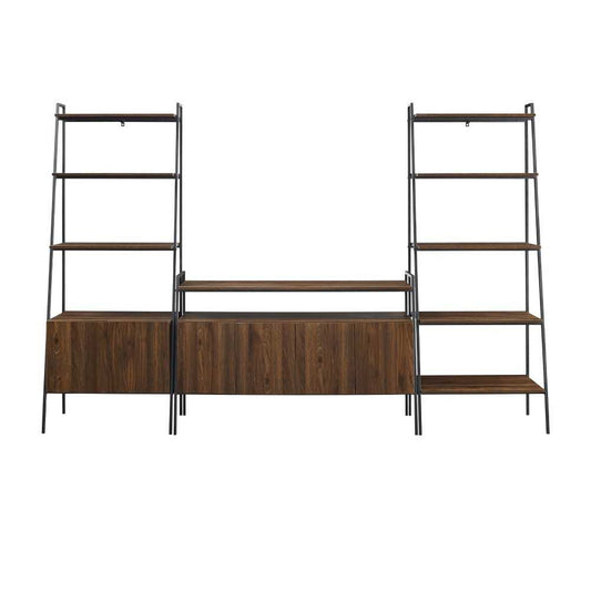 3 Piece Metal and Wood TV Console and Ladder Shelves - Dark Walnut