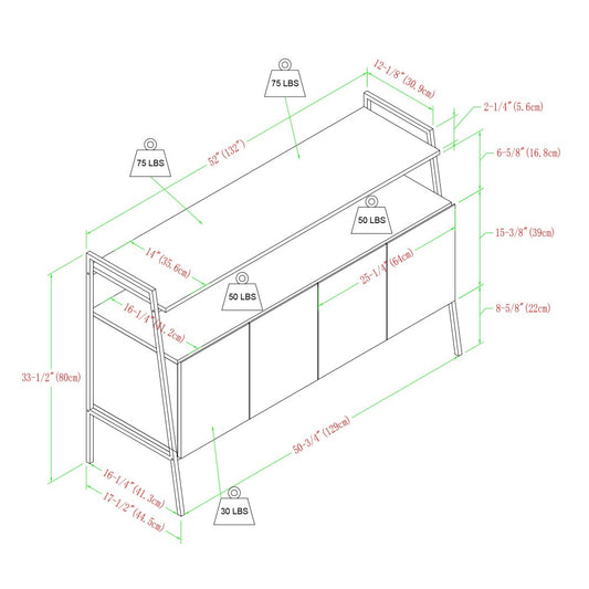 3 Piece Metal and Wood TV Console and Storage Shelves - Dark Walnut