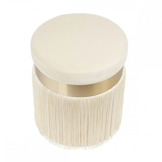 TOV Furniture Melody Cream Tasseled Ottoman