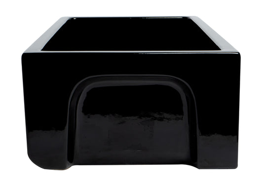 ALFI brand Black Gloss Reversible Smooth / Fluted Single Bowl Fireclay Farm Sink