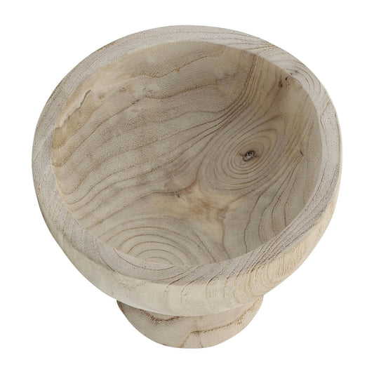 Wood, 12" Round Bowl W/ Ribbed Base, Natural