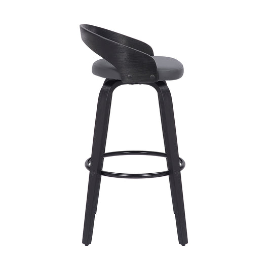 Sonia 30" Bar Height Swivel Grey Faux Leather and Black Wood Bar Stool