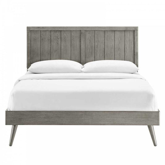 Alana Queen Wood Platform Bed With Splayed Legs, Gray