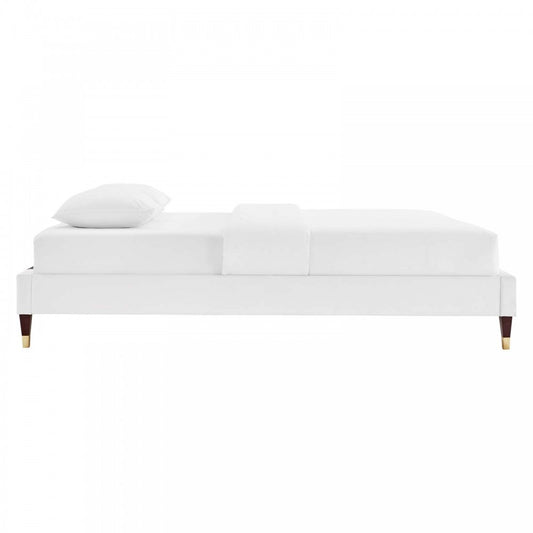 Harlow Full Performance Velvet Platform Bed Frame, White