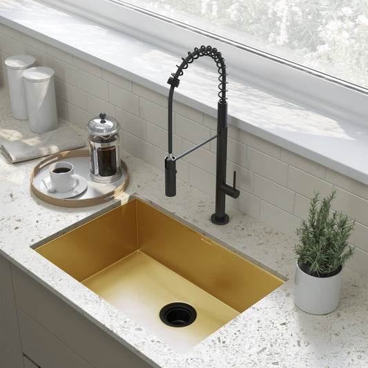 Tourner 26 x 18 Stainless Steel, Single Basin, Undermount Kitchen Sink, Gold