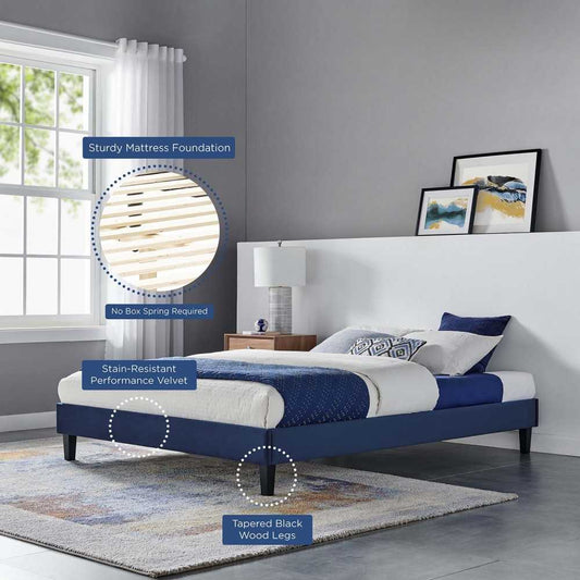 Reign Full Performance Velvet Platform Bed Frame, Navy
