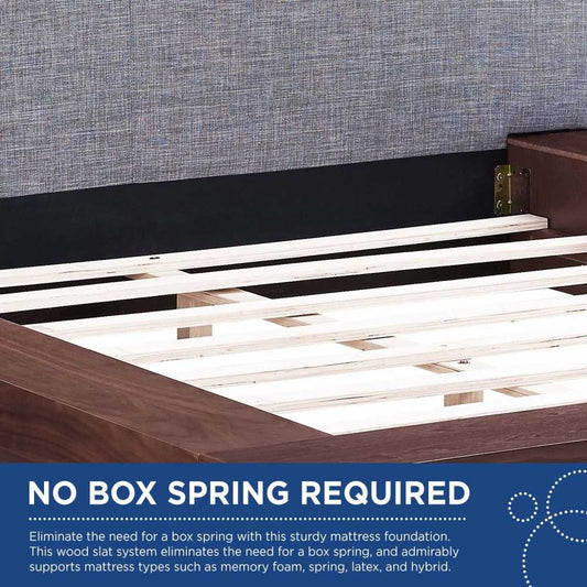 Freja Queen Fabric Platform Bed, Walnut Gray