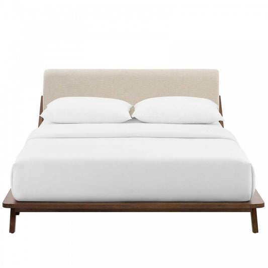 Luella Queen Upholstered Fabric Platform Bed, Walnut Beige