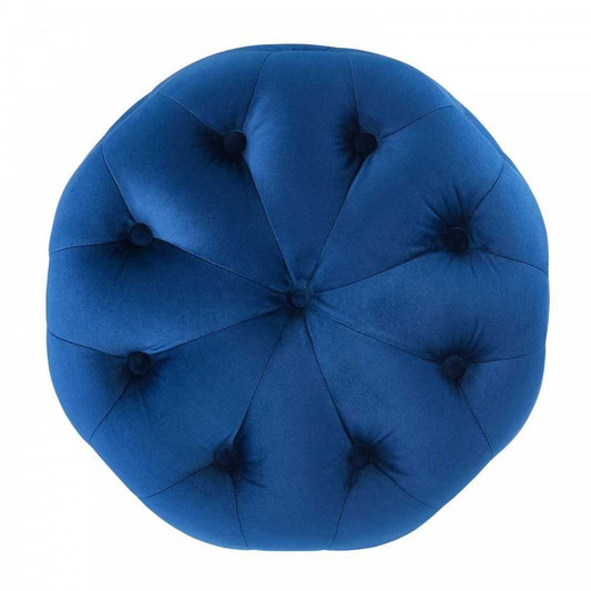 Amour Tufted Button Round Performance Velvet Ottoman, Navy