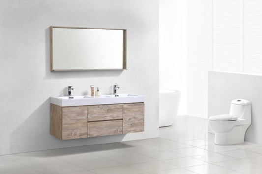 Bliss 60" Double Sink Nature Wood Wall Mount Modern Bathroom Vanity