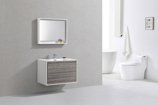 DeLusso 36" Ash Gray Wall Mount Modern Bathroom Vanity