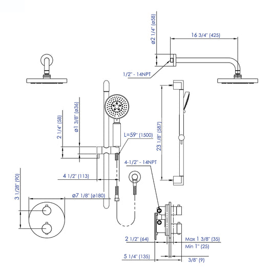 ALFI brand AB2545-PC Polished Chrome Round Style 2 Way Thermostatic Shower Set
