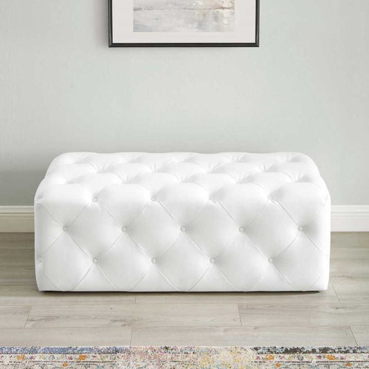 Amour Tufted Button Large Square Faux Leather Ottoman