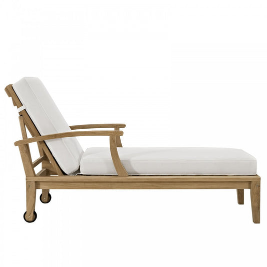 Marina Outdoor Patio Teak Single Chaise, Natural White