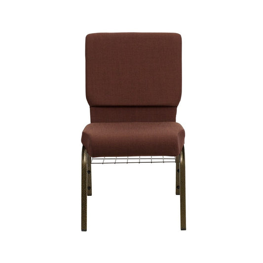 18.5''W Church Chair in Brown Fabric with Cup Book Rack - Gold Vein Frame