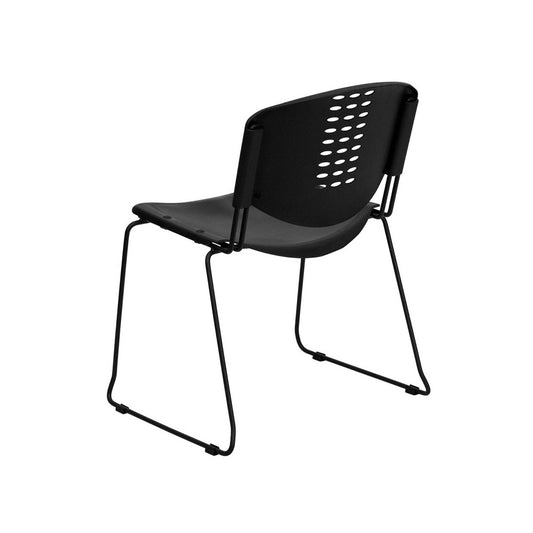 400 lb. Capacity Black Plastic Stack Chair with Black Frame