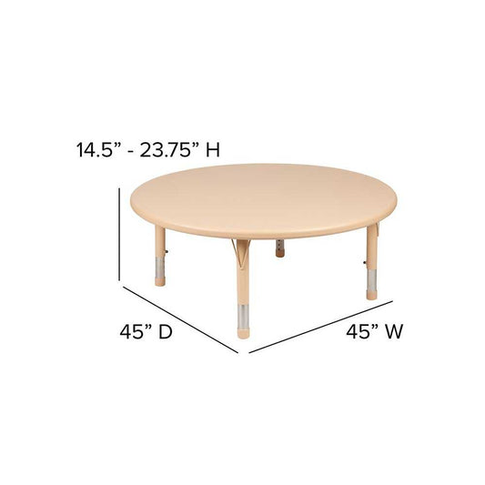 48''W x 72''L Kidney Oak Thermal Laminate Activity Table - Height Adjustable Short Legs
