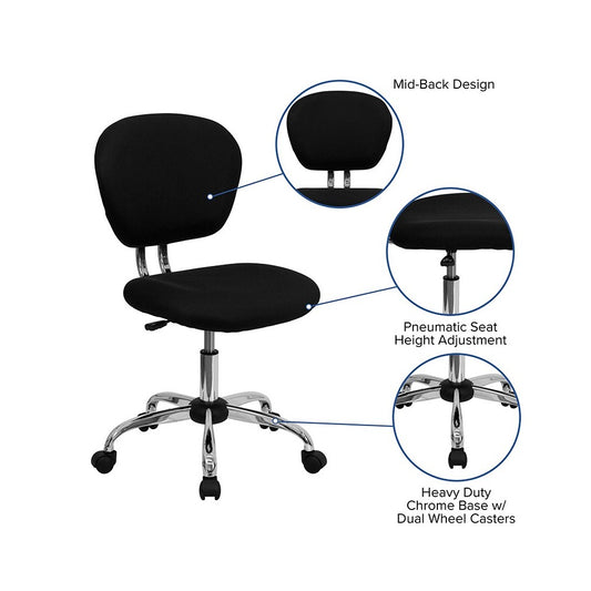 Mid-Back Black Mesh Padded Swivel Task Office Chair with Chrome Base