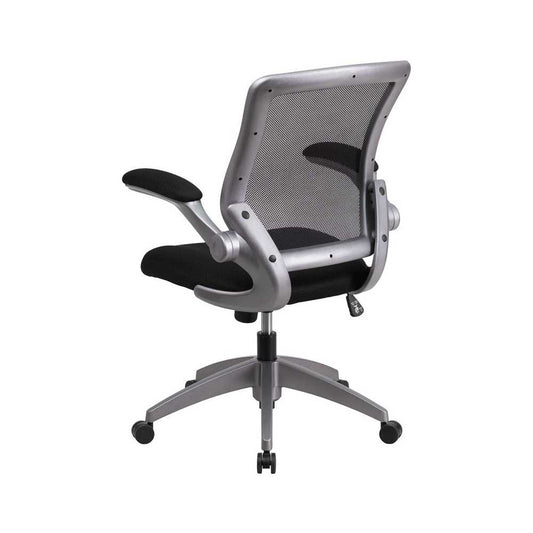 Mid-Back Black Mesh Swivel Ergonomic Task Office Chair with Gray Frame and Flip-Up Arms