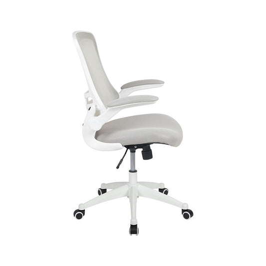 Mid-Back Light Gray Mesh Swivel Ergonomic Task Office Chair with White Frame and Flip-Up Arms