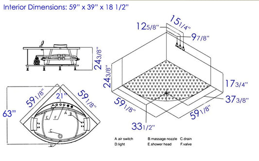 EAGO 5' Rounded Modern Double Seat Corner Whirlpool Bath Tub with Fixtures