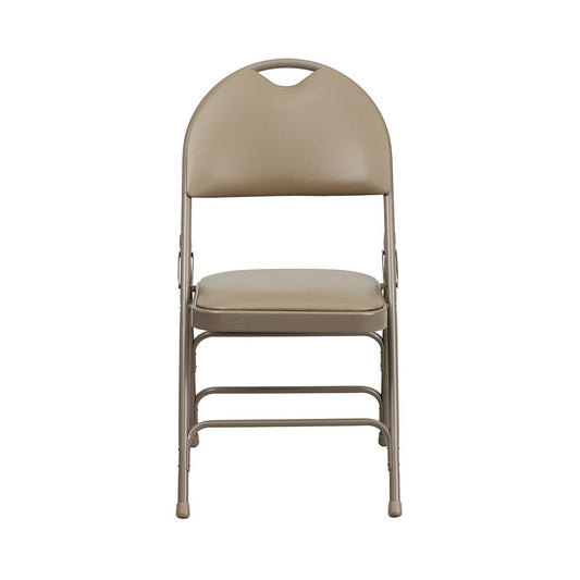 2 Pack Ultra-Premium Triple Braced Beige Vinyl Metal Folding Chair with Easy-Carry Handle