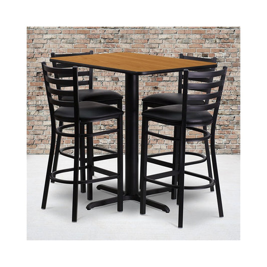 24''W x 42''L Rectangular Natural Laminate Table Set with 4 Ladder Back Metal Barstools - Black Vinyl Seat