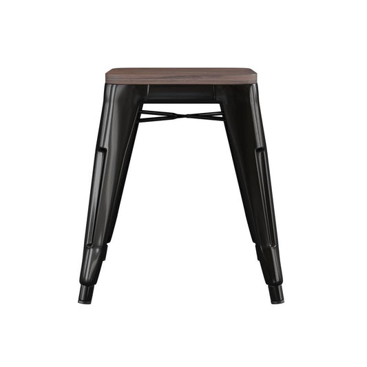 Flash Furniture Kai 4PK Black Stool-Wood Seat ET-BT3503-18-BLK-WD-GG
