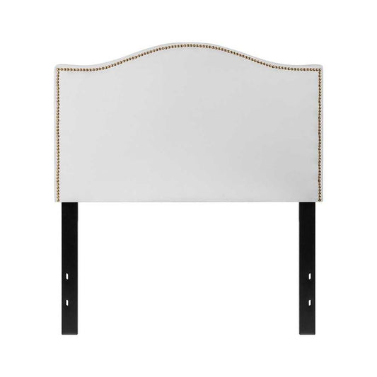 Lexington Upholstered Twin Size Headboard with Accent Nail Trim in White Fabric