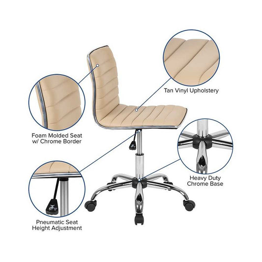 Low Back Designer Armless Tan Ribbed Swivel Task Office Chair
