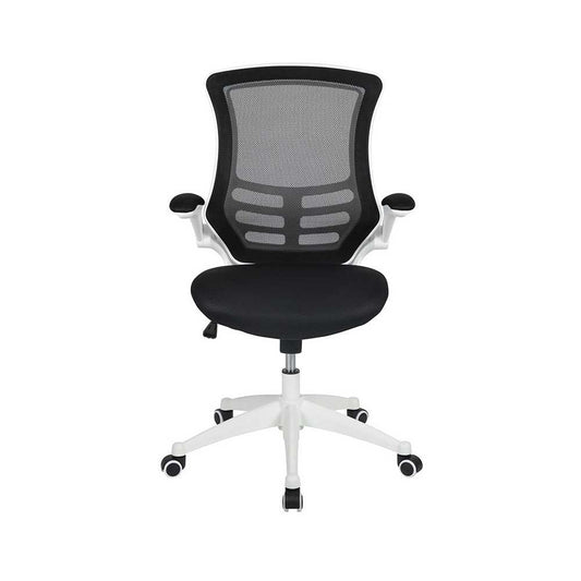 Mid-Back Black Mesh Swivel Ergonomic Task Office Chair with White Frame and Flip-Up Arms