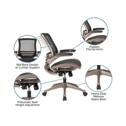 Mid-Back Transparent Black Mesh Executive Swivel Office Chair with Melrose Gold Frame and Flip-Up Arms