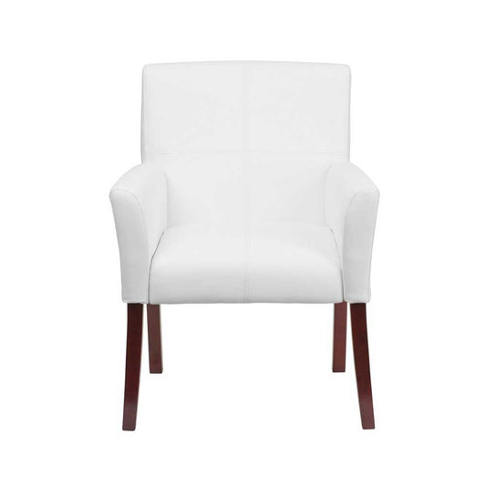 White LeatherSoft Executive Side Reception Chair with Mahogany Legs