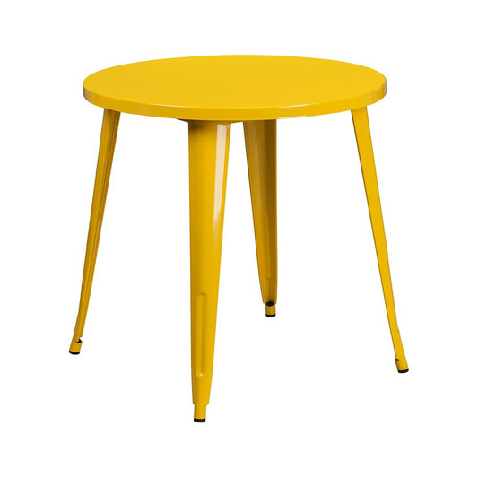 Commercial Grade 30" Round Yellow Metal Indoor-Outdoor Table Set with 2 Arm Chairs