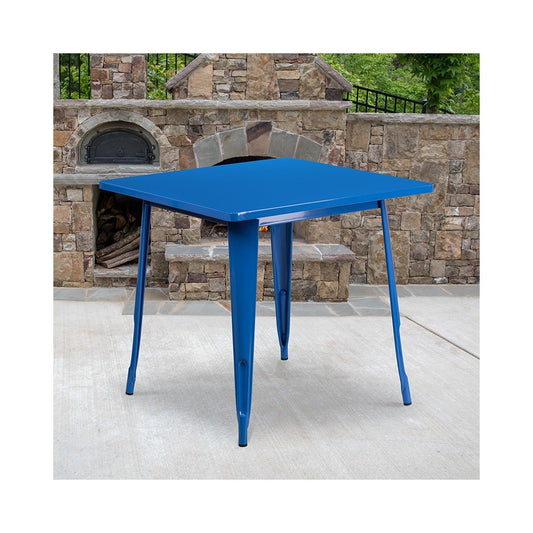 Commercial Grade 31.5" Square Blue Metal Indoor-Outdoor Table