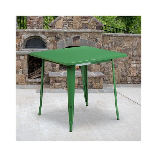 Commercial Grade 31.5" Square Green Metal Indoor-Outdoor Table