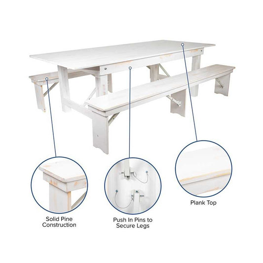 8' x 40" Antique Rustic White Folding Farm Table and Two Bench Set
