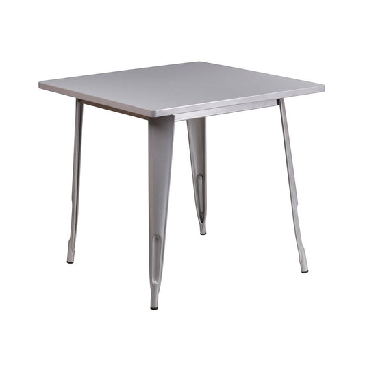Commercial Grade 31.5" Square Silver Metal Indoor-Outdoor Table Set with 4 Arm Chairs