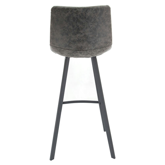 LeisureMod Elland Modern Upholstered Grey Leather Bar Stool
