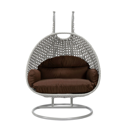LeisureMod Mendoza Light Grey Wicker Hanging 2 person Egg Swing Chair - Brown