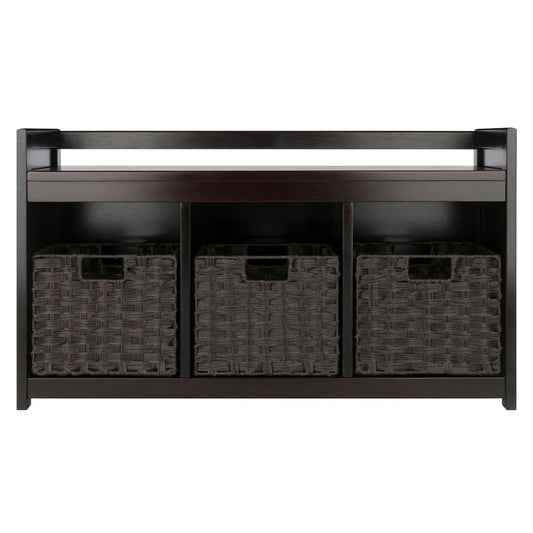 Addison 4-Pc Storage Bench with 3 Foldable Fabric Baskets, Espresso and Black
