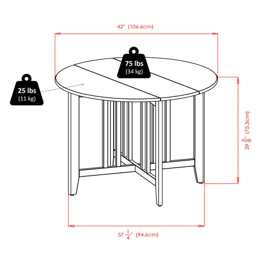 Alamo 5-Pc Round Drop Leaf Table with Ladder-back Chairs, Walnut