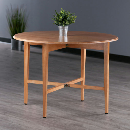 Hannah Double Drop Leaf Round Dining Table, Light Oak