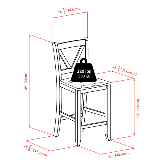 Lynnwood 3-Pc Drop Leaf Table with V-Back Counter Stools, Walnut