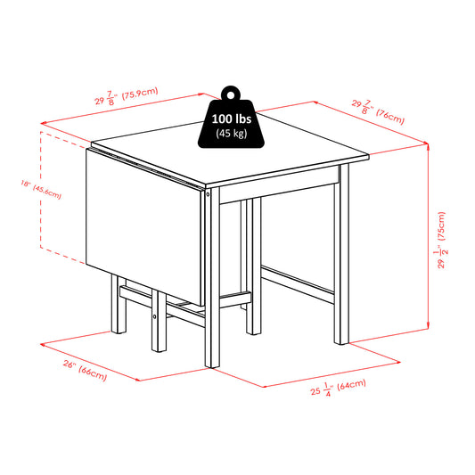 Lynden 3-Pc Drop Leaf Table with Ladder-back Chairs, Walnut