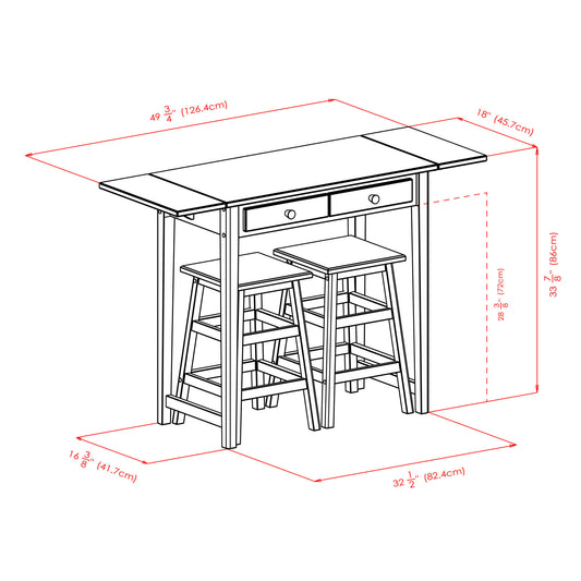 Mercer 3-Pc Drop Leaf Island with Square Seat Counter Stools, Cappuccino