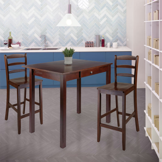 Perrone 3-Pc High Drop Leaf Table with Ladder-back Counter Stools, Walnut