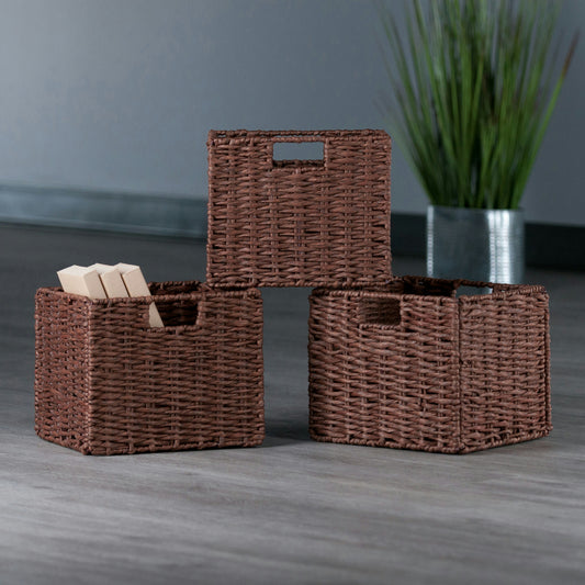 Tessa 3-Pc Foldable Woven Rope Basket Set, Walnut