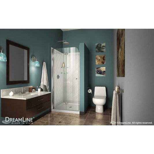 DreamLine Aqua Fold 36 in. D x 36 in. W x 76 3/4 in. H Frameless Bi-Fold Shower Door in Chrome with White Base and Backwall Kit