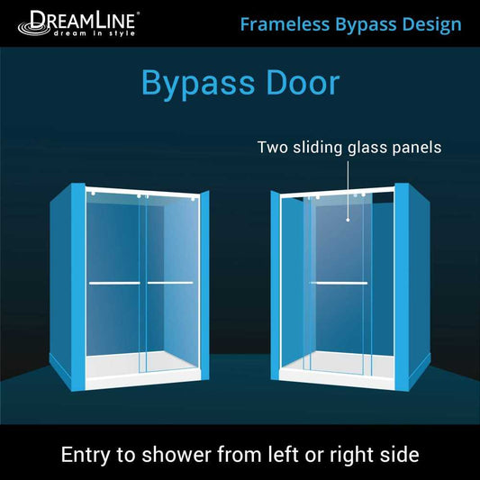 Charisma 30 in. D x 60 in. W x 78 3/4 in. H Frameless Bypass Shower Door in Chrome with Left Drain Black Base